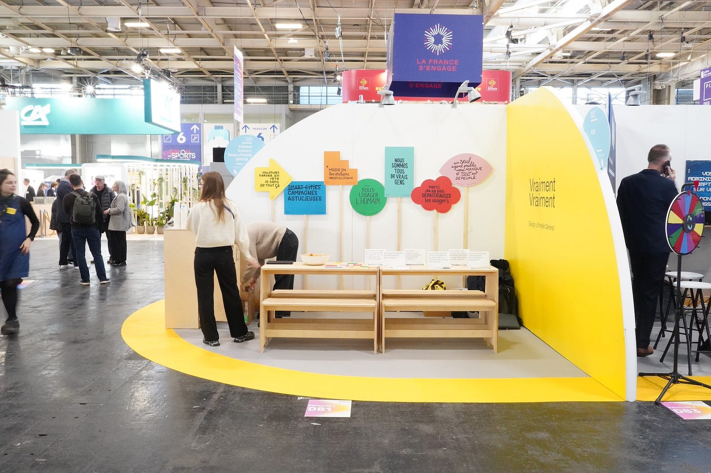 Installer le design d’intérêt général au cœur du Salon des maires et des collectivités locales, avec un stand Vraiment Vraiment conçu comme une ressourcerie pour aider les élu·es et agent·es publics à aborder différemment et concrètement les conflits de soutenabilités sur leur territoire. Un succès !